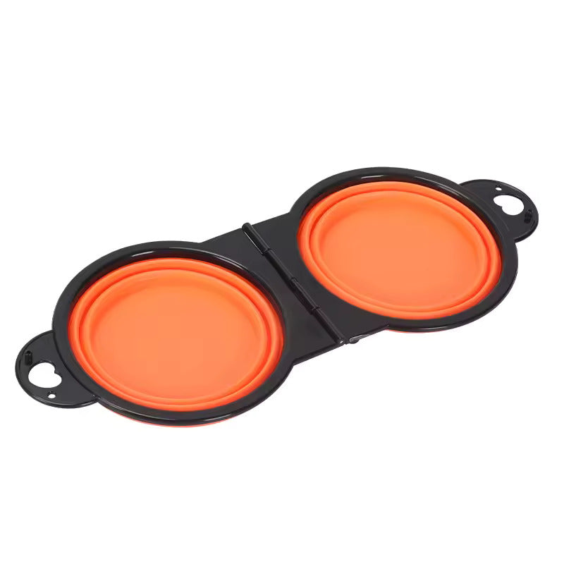Rubber Foldable Double Bowl Pet Feeding Bowl